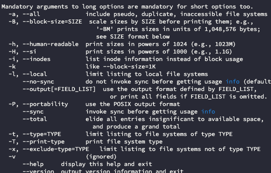 자세한 옵션은 df --help를 통해 확인할 수 있다.