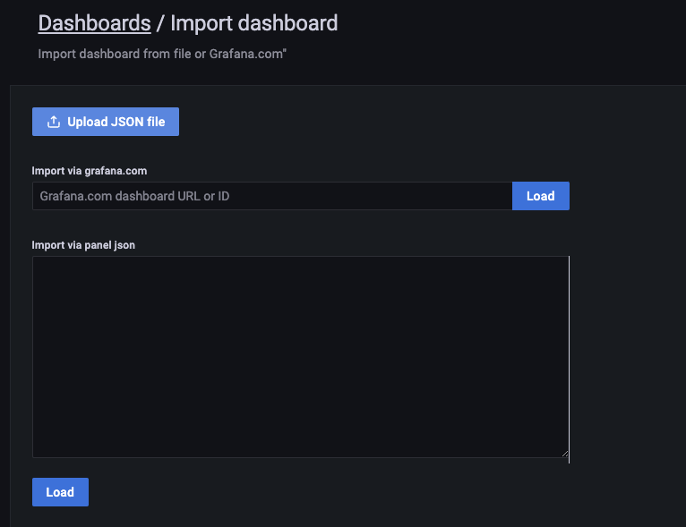 다운로드 완료 후에 Dashobards > import를 눌러준다.