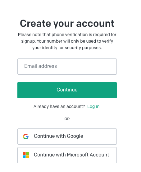 사이트 접속 한 후 다음 화면에서 Sign up을 통해 가입을 진행한다.
